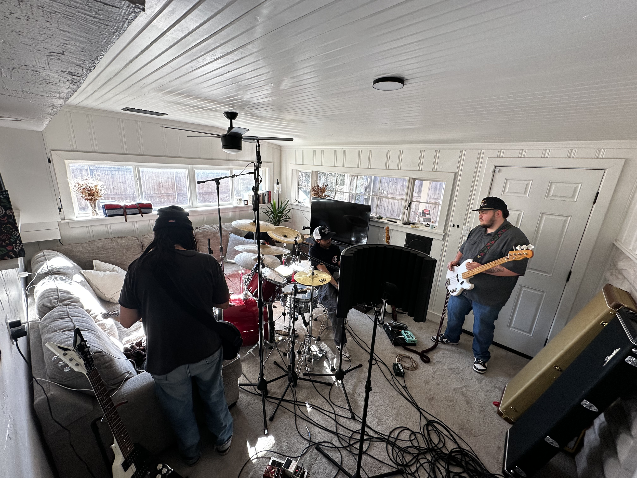 Parker House Studios is named as such because it actually is a house. Owners Andrew and Danica Akins turned their two-bedroom home into a convertible studio in early 2025, leveraging the unique historic layout and charm to spark creativity and functionality. It offers a full control room with recording isolation, a drum and instrument recording room, and a live room with reflective wood floors and walls for reverberant and roomy sounds. We believe the space lends itself to comfort and inspiration, and when you record here, you can make yourself at home.